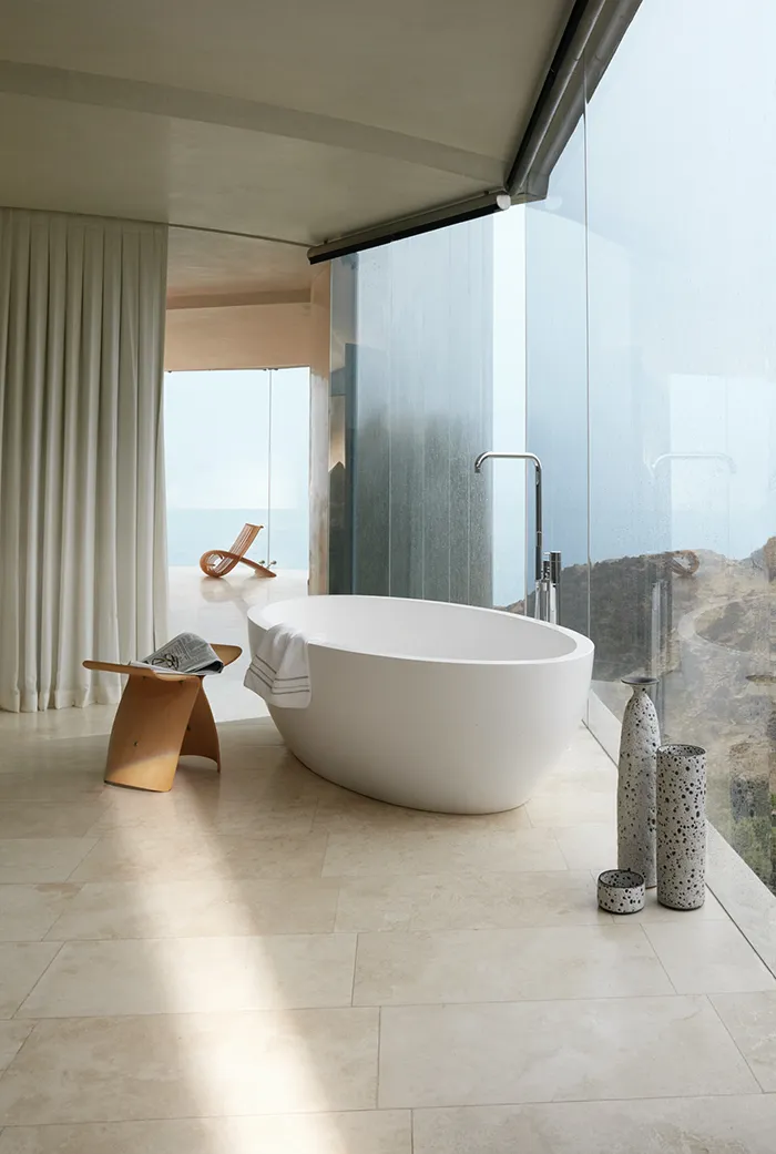 La Razor House semble flotter au-dessus de l’océan Pacifique, offrant des vues spectaculaires depuis ses vastes baies vitrées. Conçue par Wallace E. Cunningham, cette villa minimaliste se distingue par ses lignes ultra-modernes et ses matériaux bruts. Le verre et le béton s’unissent pour créer une structure à la fois imposante et légère. Loin d’être simplement une maison, la Razor House est une icône de l’architecture contemporaine. Creusé dans la roche, ce vaisseau de verre et sa piscine à débordement ont charmé Alicia Keys et Swizz Beatz qui en ont fait la maison de leurs rêves