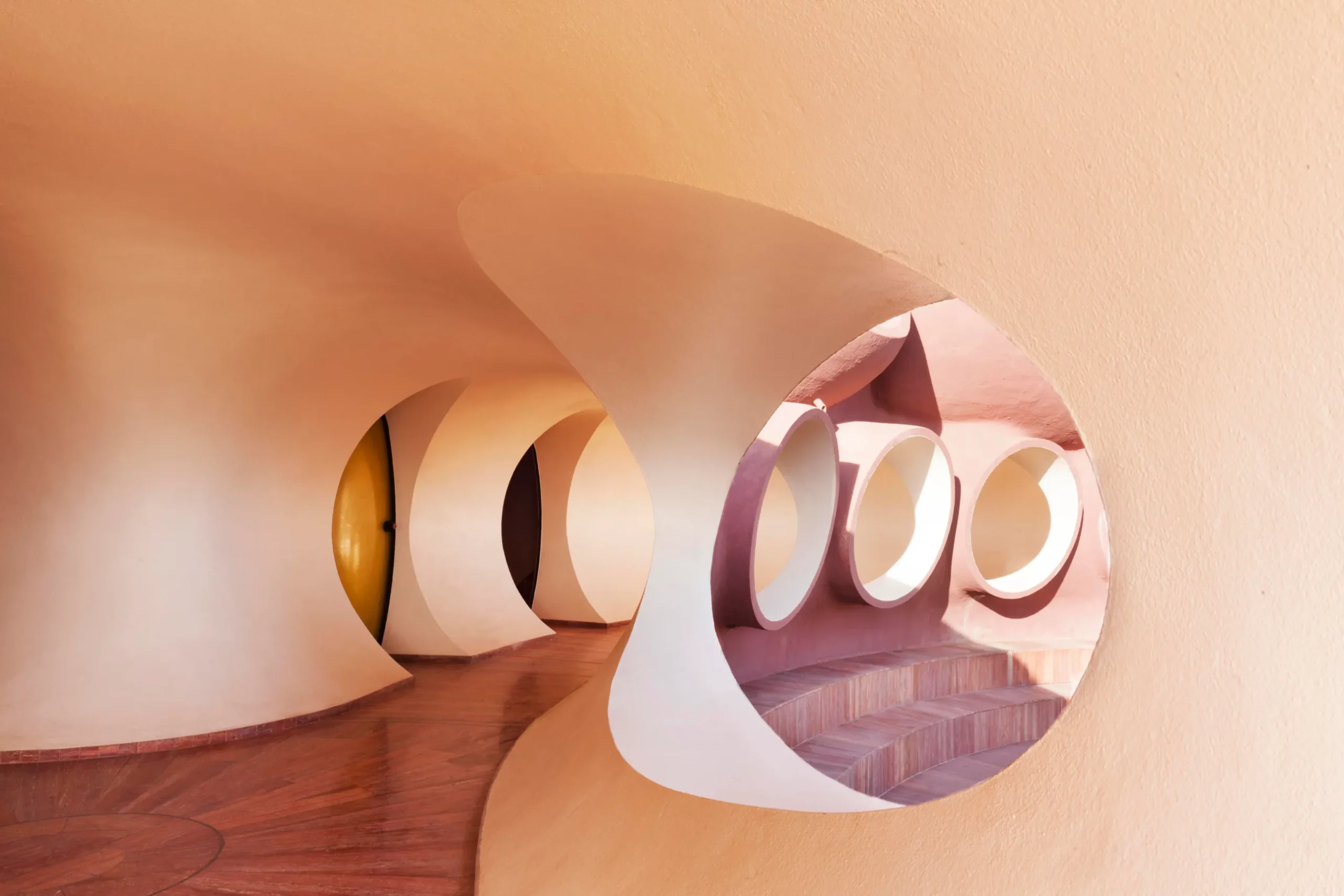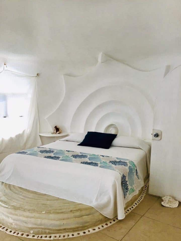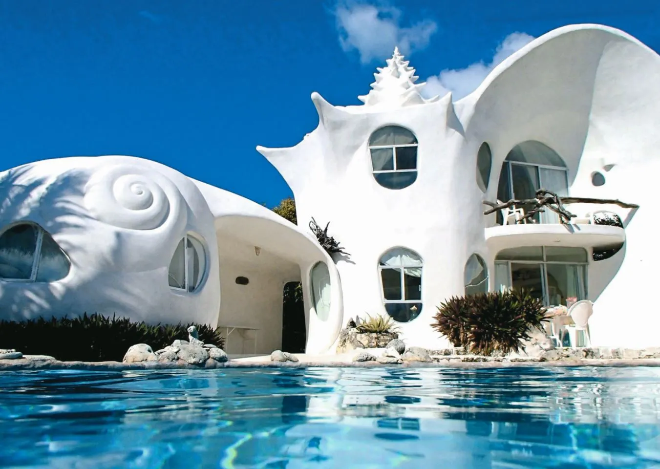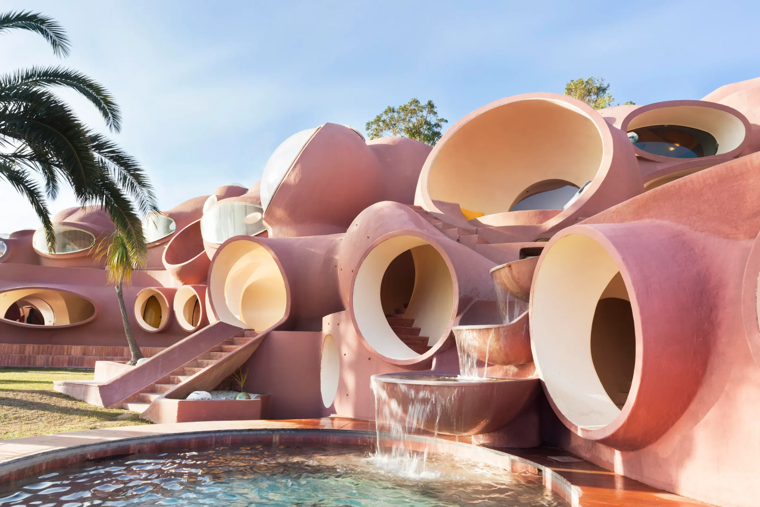 Oeuvre d’art et habitat à la fois, la “Maison Coquillage” signée Octavio Ocampo est une véritable sculpture vivante. Inspirée par la forme d’un coquillage géant, cette villa semble émaner des fonds marins. À l’intérieur, les murs sinueux et le mobilier intégré au design global prolongent cette immersion aquatique. Ocampo, maître du surréalisme, a fusionné ici la fonction et la poésie, créant un espace où chaque détail respire le mystère et la mer.