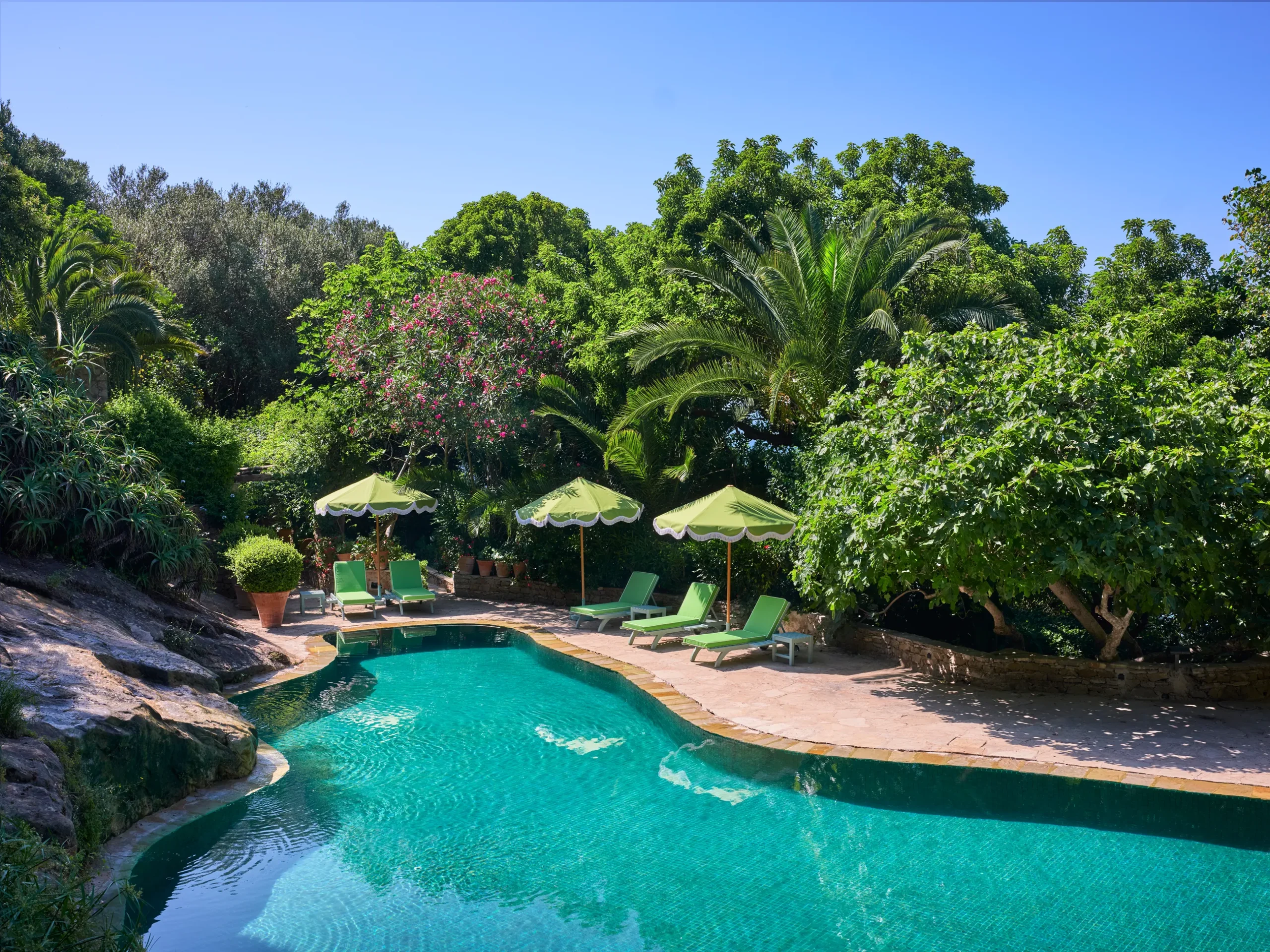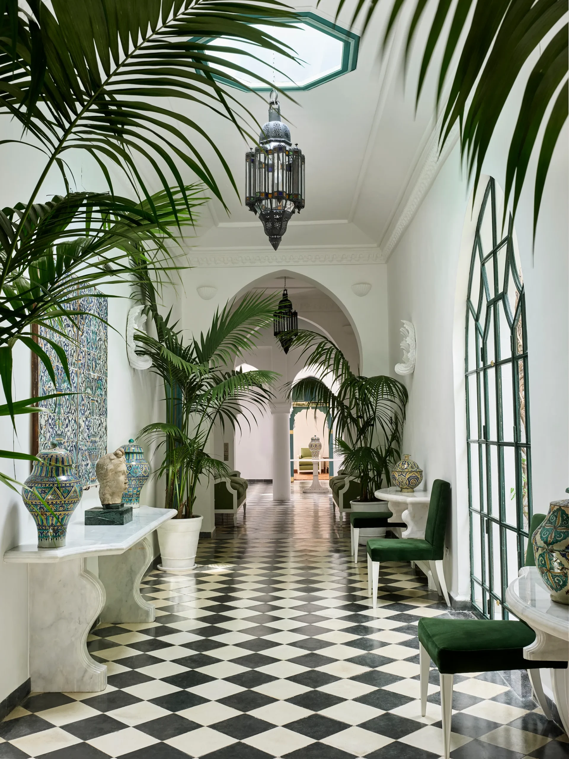Surplombant le détroit de Gibraltar, Villa Mabrouka (ou « La Maison de la Chance ») est un refuge méditerranéen où Yves Saint Laurent aimait se ressourcer avec son compagnon, Pierre Bergé. Elle est décorée par Jacques Grange avec pour directive “d’imaginer la demeure d’un anglais excentrique des années 1950, venu vivre dans la ville” et demeure à l’abri des regards pendant des décennies. Avec ses jardins parfumés et ses intérieurs sophistiqués mêlant le style marocain et l’art de vivre français, Villa Mabrouka est un témoignage de l’amour du designer pour Tanger, ville où il trouva tant d’inspiration. Aujourd’hui, cette demeure aussi privée que célèbre ouvre ses portes en tant qu’hôtel, grâce à l’acquisition et au relookage menés par le styliste et designer anglais Jasper Conran.