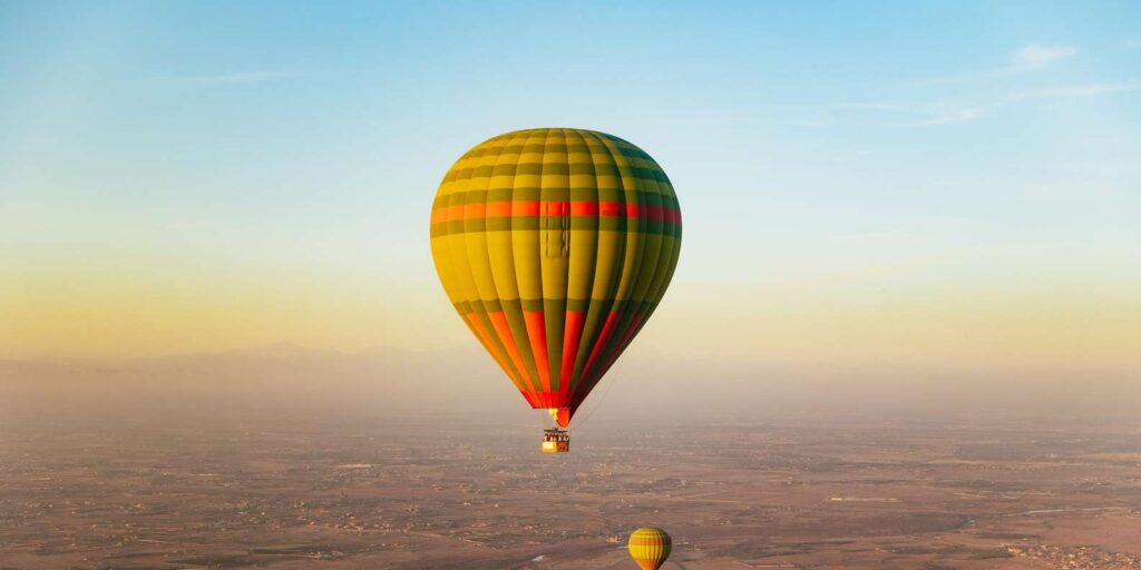 De bon matin, montez à bord d’une montgolfière et laissez imprégner par la quiétude absolue qui règne au-dessus du désert et des montagnes de l’Atlas. Alors que le soleil s’élève lentement à l’horizon, la beauté de la nature marocaine se dévoile sous vos yeux. Un spectacle mémorable qui se découvre autour d’un petit-déjeuner dans les airs.